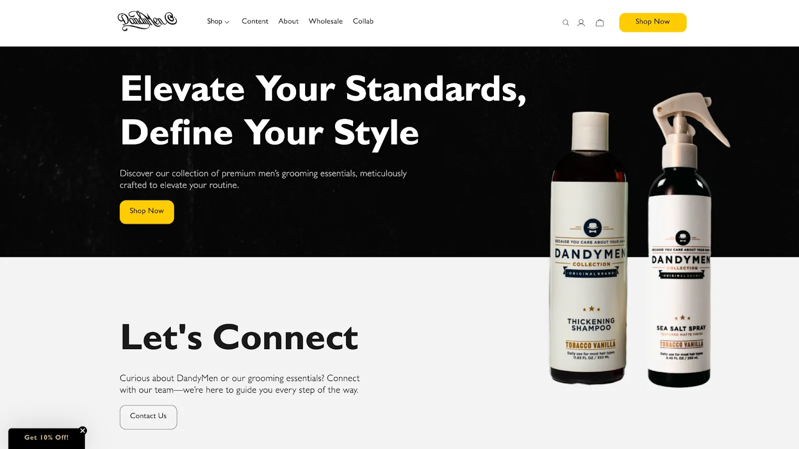 With a bold headline like 'Elevate your standards, define your style,' and a compelling product image, we showcased the quality and meticulous craftsmanship of Dandymen's grooming essentials. This combination of enticing visuals and powerful messaging helps push potential customers over the edge, clearly demonstrating why Dandymen is the ultimate choice for premium men's grooming products.