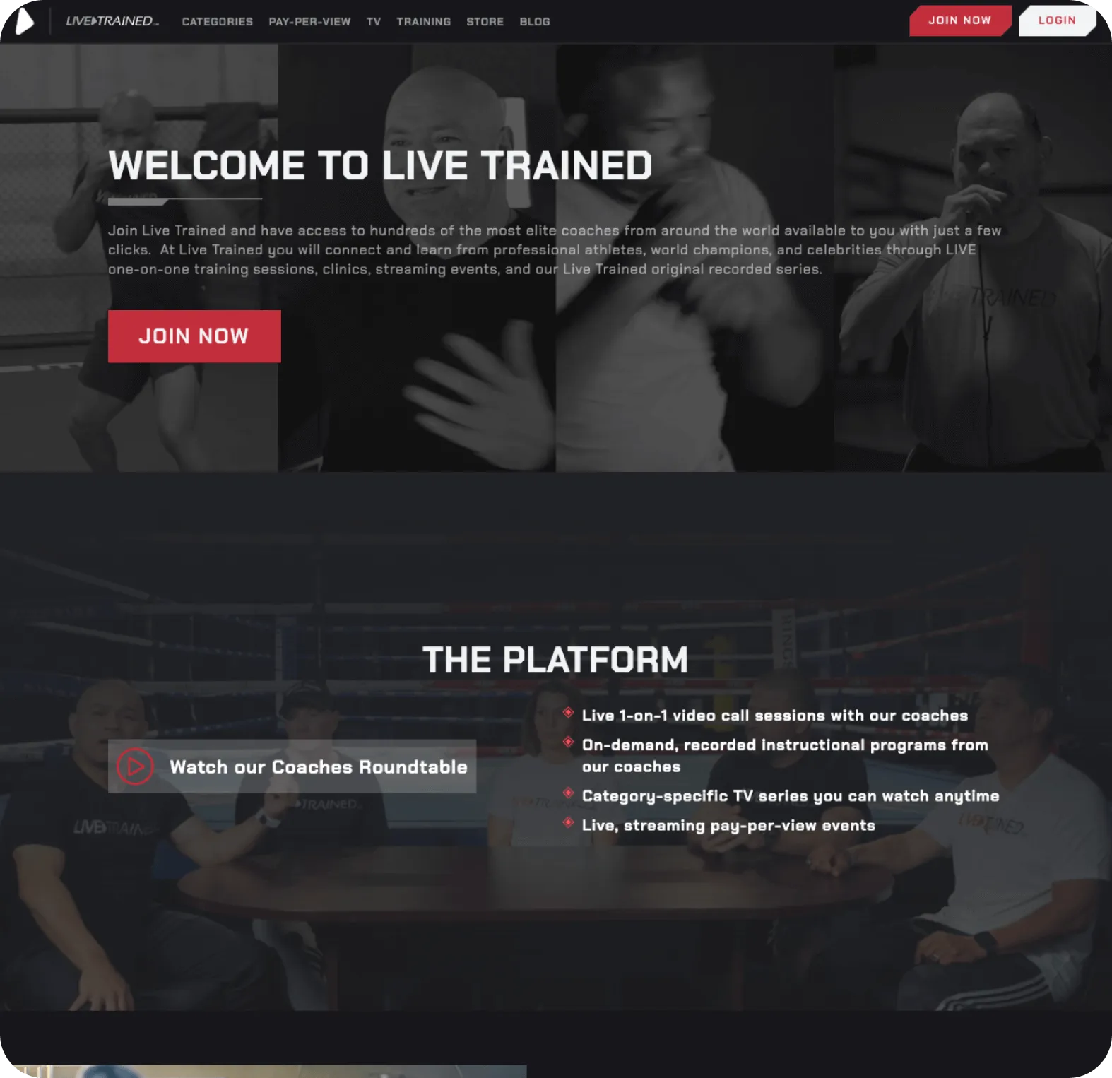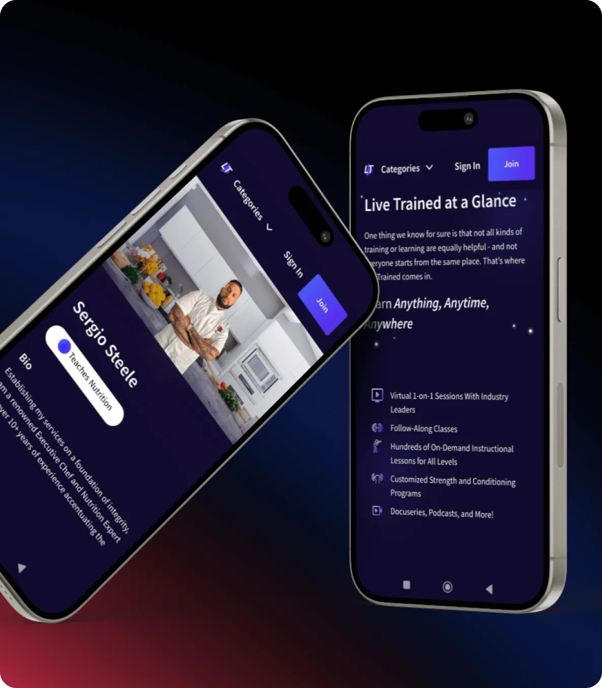 The LiveTrained digital experience was designed to embody performance and movement through bold visual direction and structured layout design. By combining strong hierarchy with intuitive navigation, we created a seamless platform that enhances usability while reinforcing brand intensity. The cohesive system strengthens engagement and positions LiveTrained confidently within the competitive online fitness landscape.