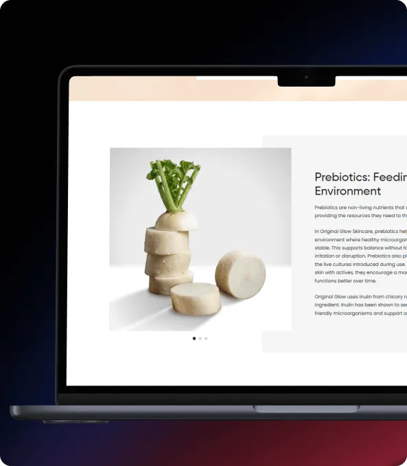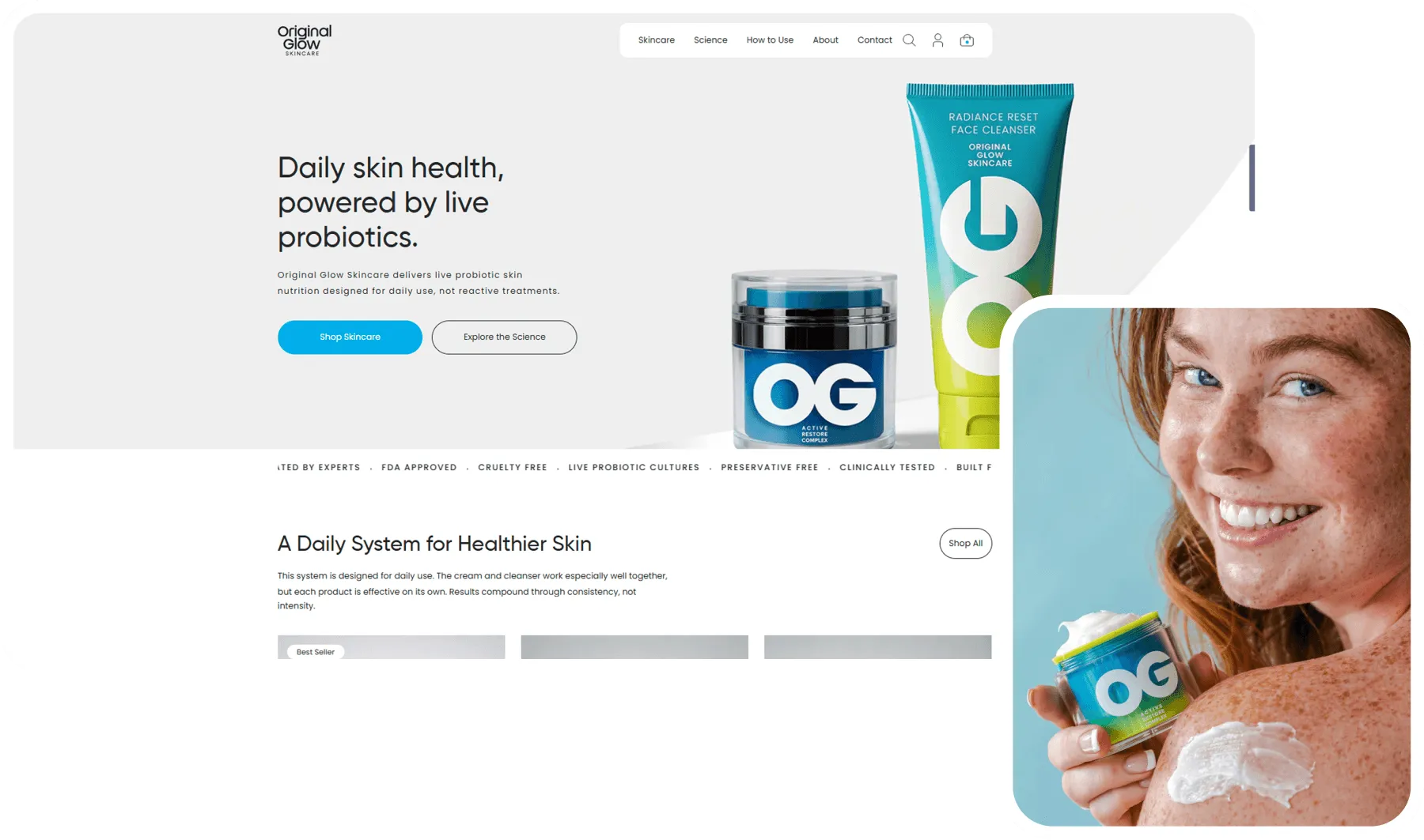 We partnered with Original Glow Skincare to craft a refined digital experience that reflects the brand’s pioneering approach to daily skin health powered by live probiotics.