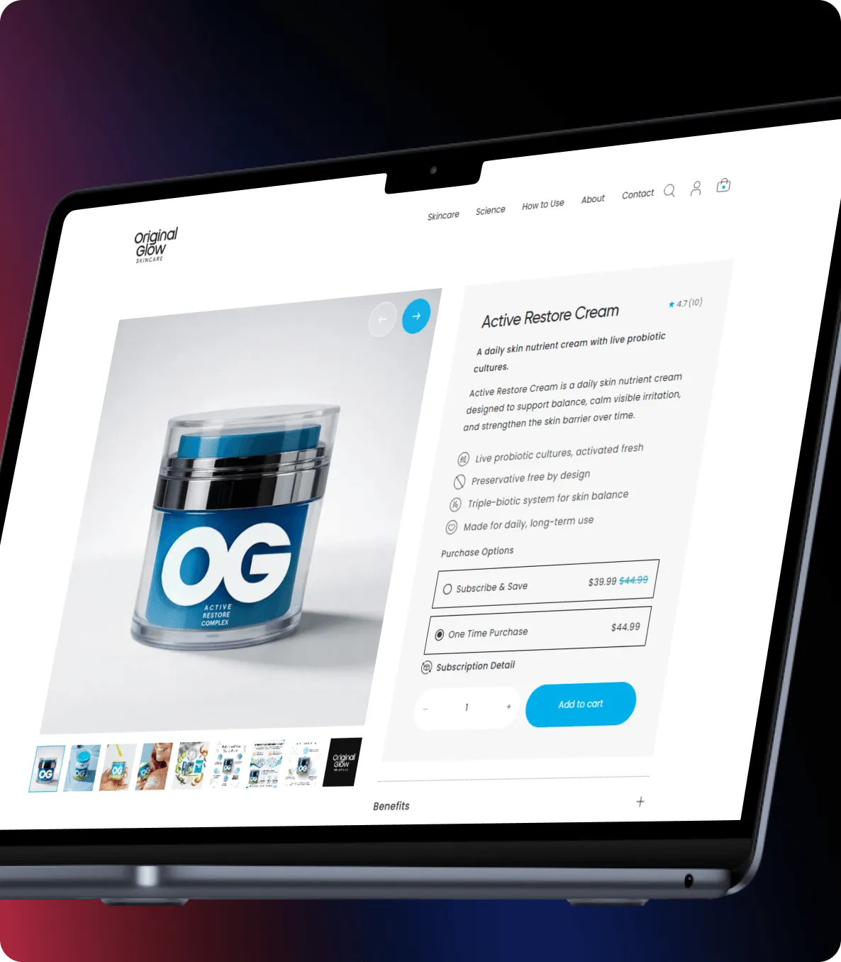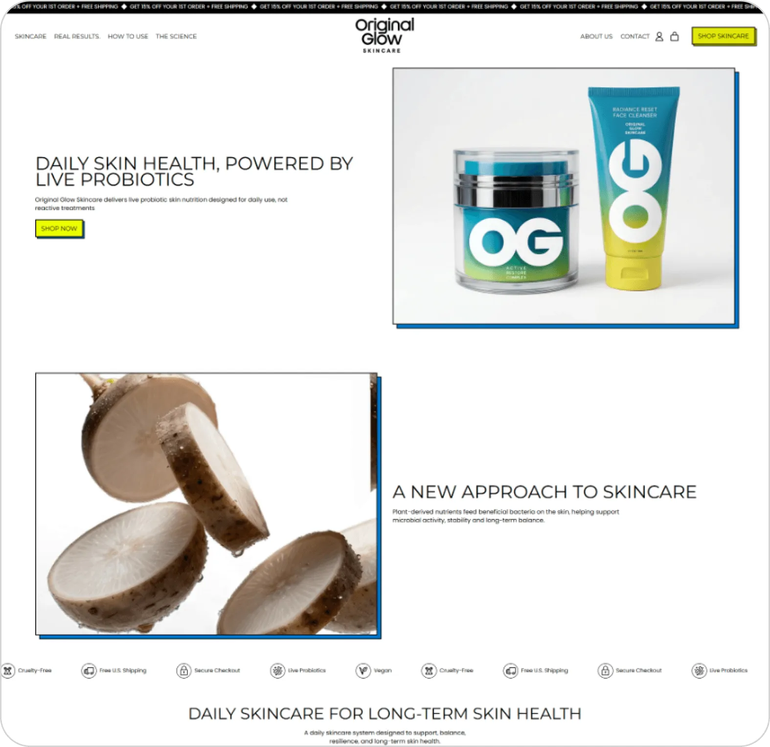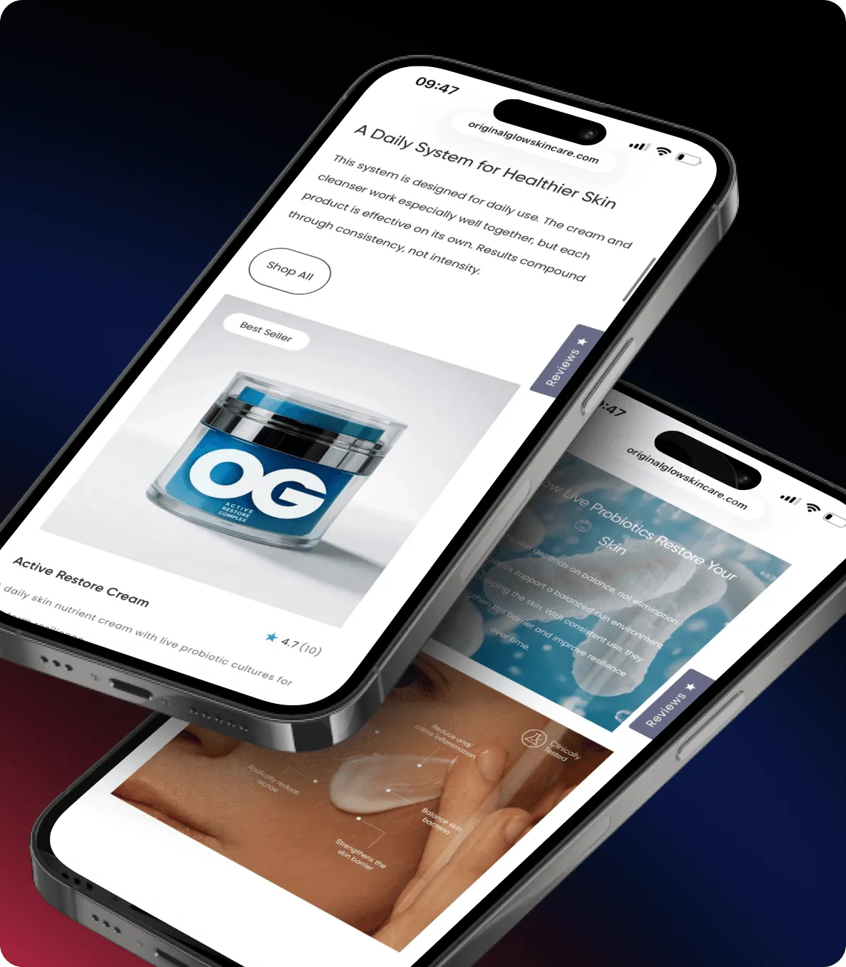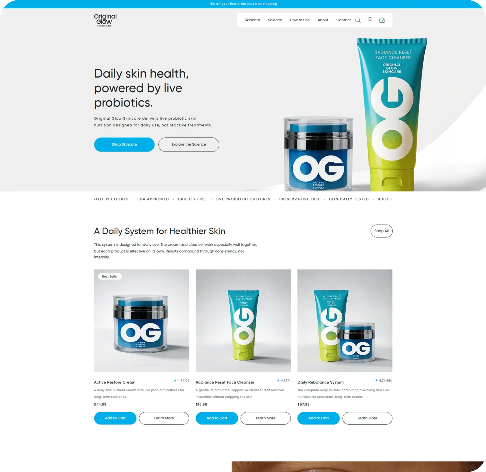 Original Glow required a website capable of clearly communicating its unique scientific positioning while creating an emotional and trustworthy connection with modern skincare consumers.