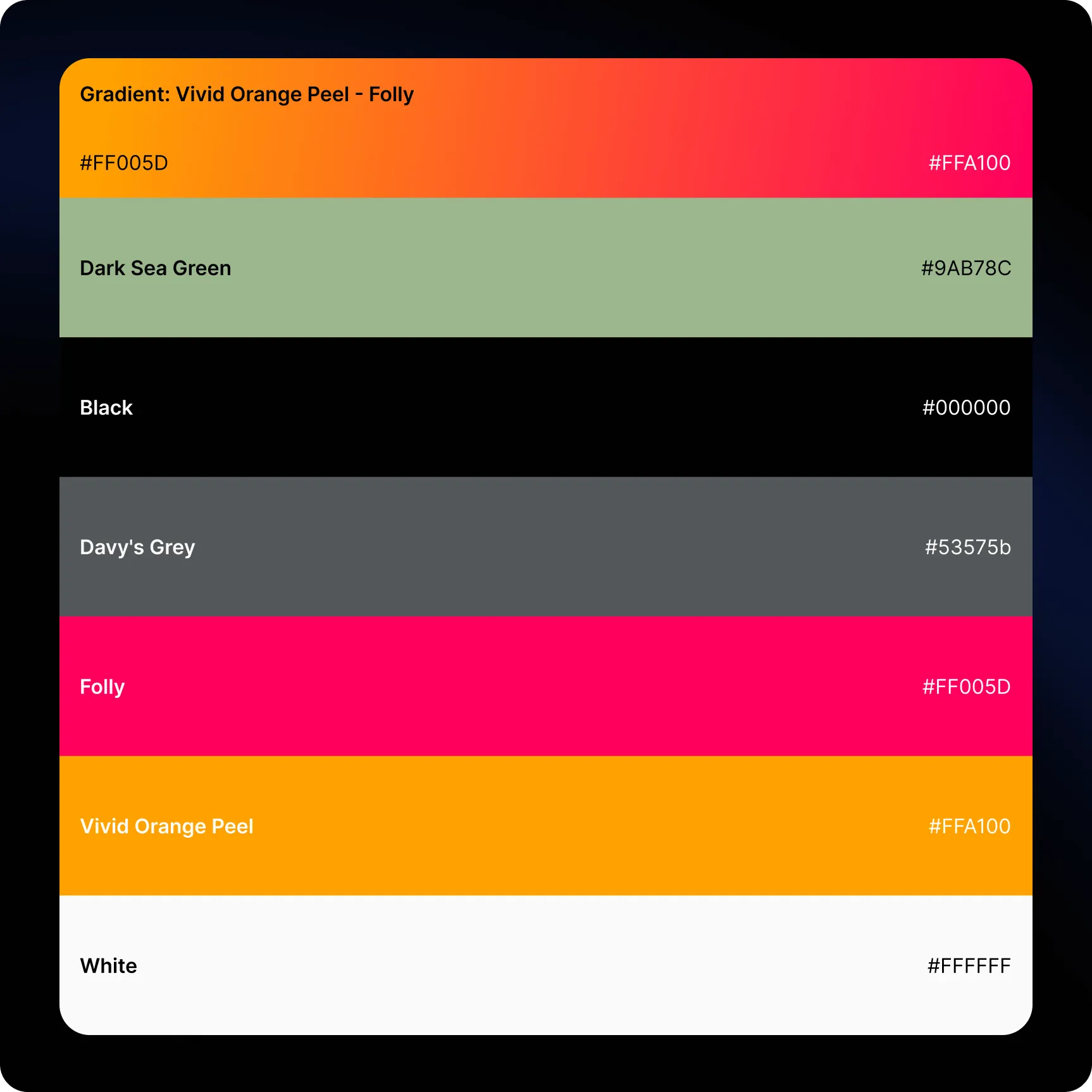 We developed a bold visual identity anchored in a dynamic gradient palette, creating a memorable and energetic brand presence.