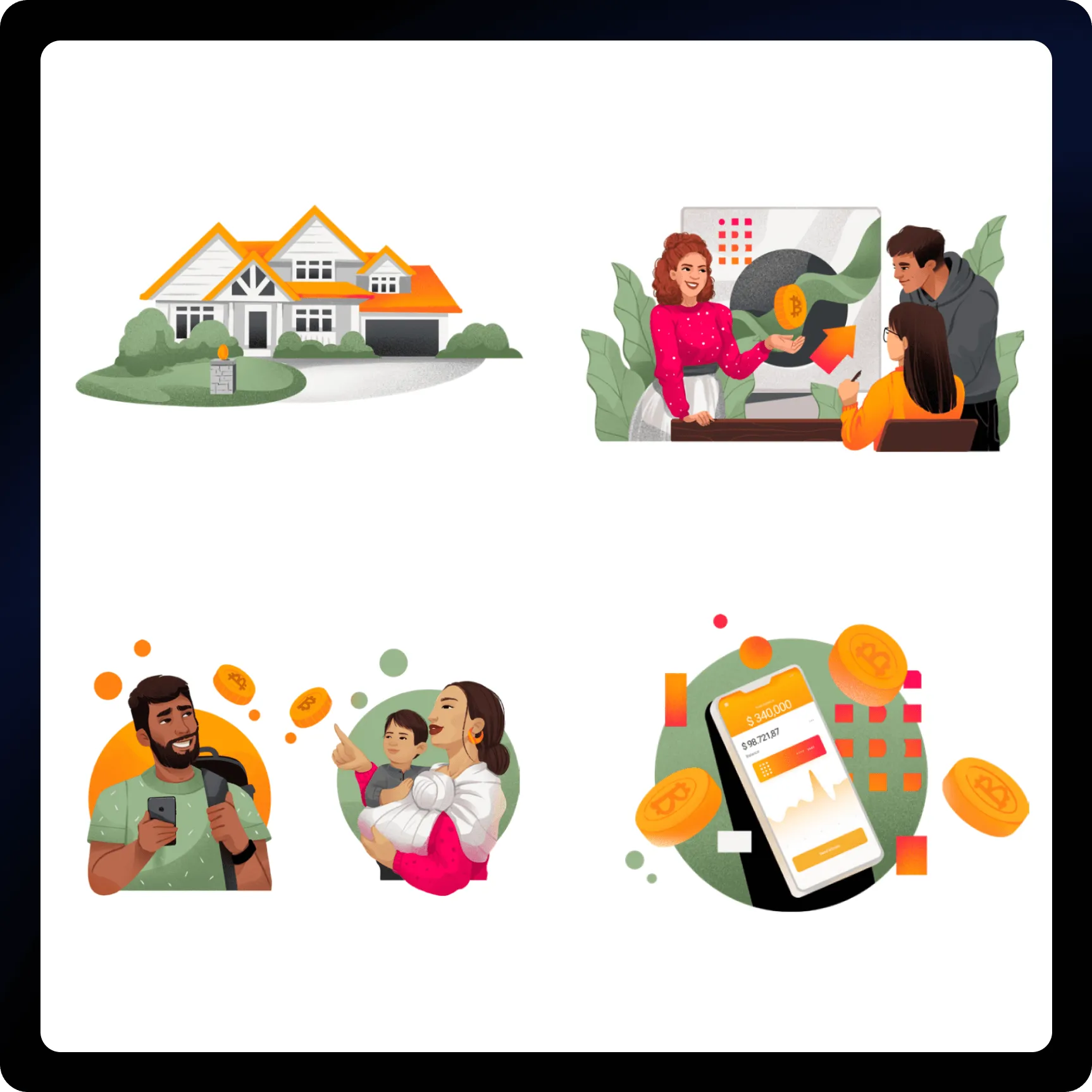 The Real Bitcoin global design system is defined by a vivid gradient transitioning from Orange Peel to Folly, complemented by Dark Sea Green for contrast and vibrancy. Headings in Mulish deliver a sleek, modern tone, while Lato body text ensures clarity and readability. Together, these elements create a bold yet refined digital identity that embodies the brand’s forward-thinking vision.